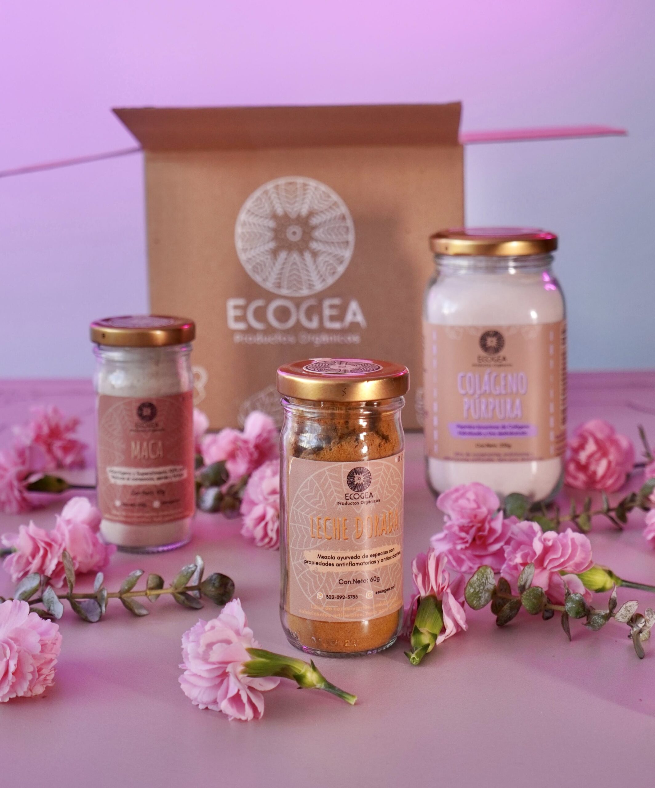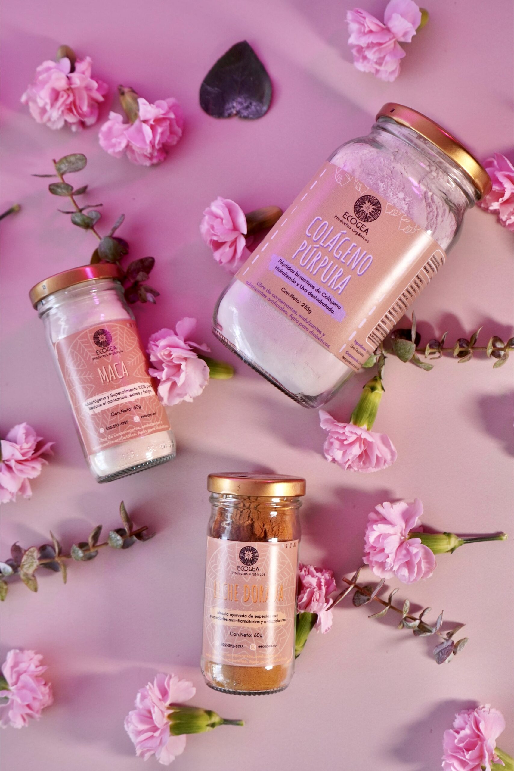 Productos: Colágeno Púrpura 235g, Maca 60g y Leche Dorada 60g